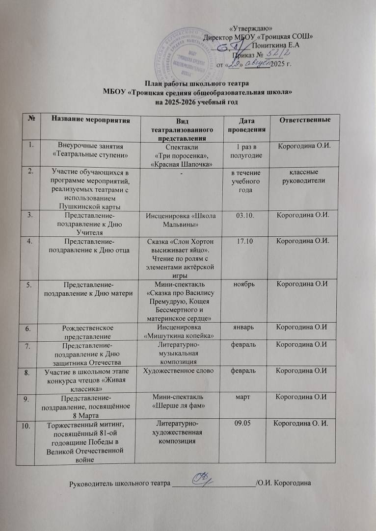 Положение о школьном театре "Театральные ступени" МБОУ "Троицкая средняя общеобразовательная школа"